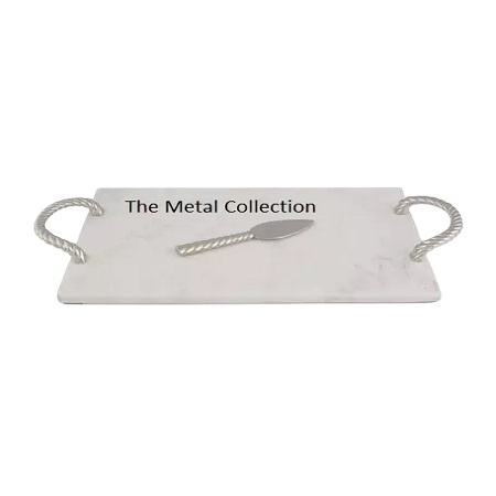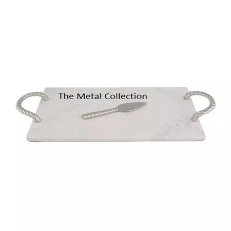 เขียงหินอ่อนมีสไตล์พร้อมมีดสำหรับสับเครื่องมือในครัวสีขาว