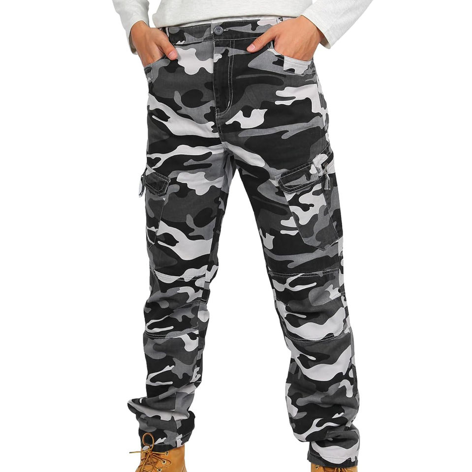 กางเกงคาร์โก้ลายพรางลำลองของผู้ชายมีสไตล์ผ้าฝ้ายที่ทนทานพร้อมกระเป๋าเก็บหลายช่องสำหรับการใช้งานในชีวิตประจำวันและกลางแจ้ง