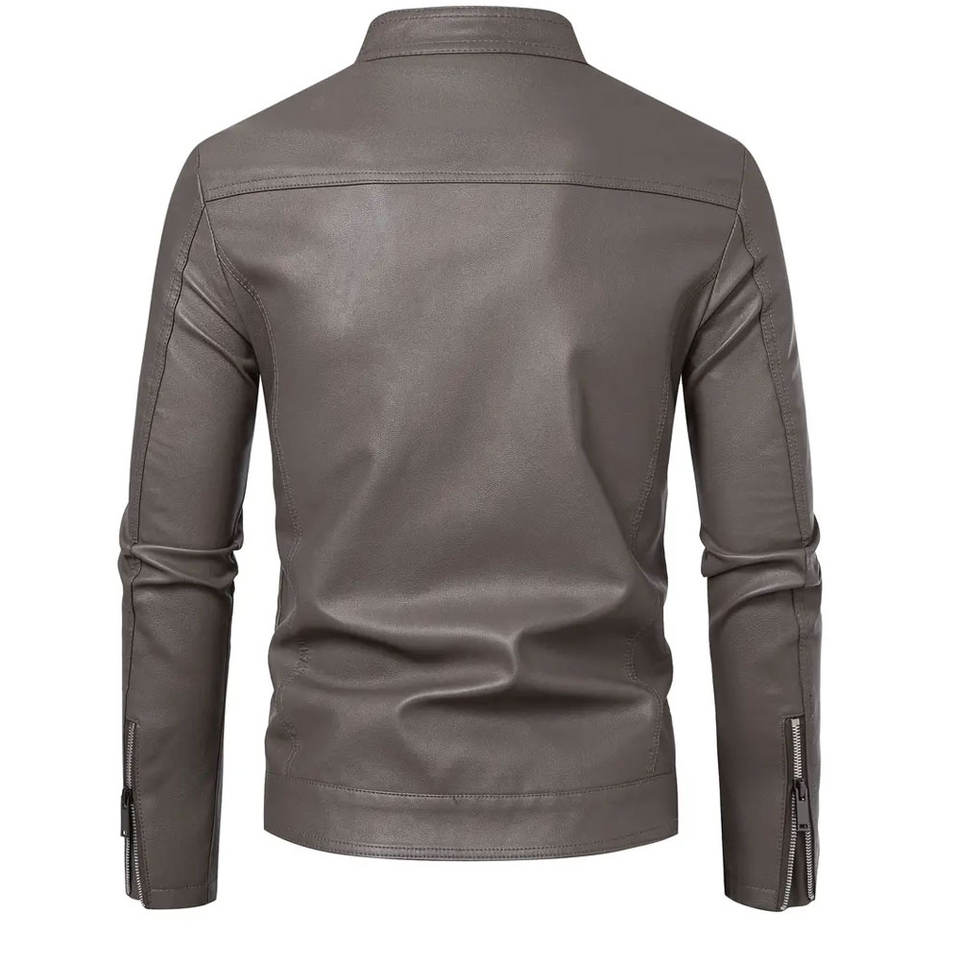 แจ็คเก็ตหนังผู้ชายมีสไตล์ พร้อมซิปด้านหน้าและปกตั้ง สำหรับใส่ลำลองและสตรีทแวร์ แจ็คเก็ตฤดูหนาวสำหรับผู้ชาย