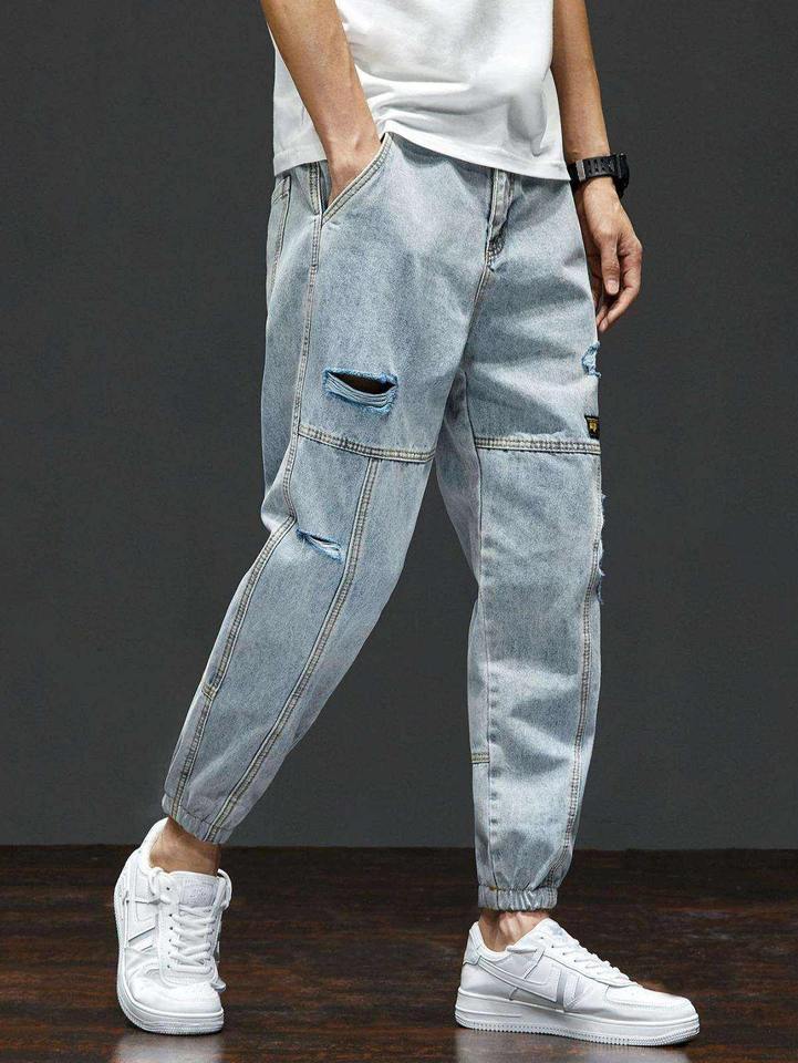 Stylish Men Loose Fit Streetwear Cargo Denim Pants Multi Pocket Durable Eco-Friendly Printed Cotton for Trendy Urban Everyday