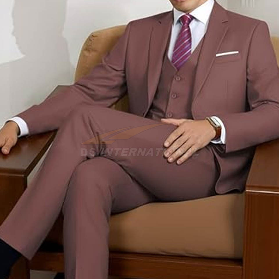 ชุดสูทสลิมฟิตสำหรับผู้ชายชุดทักซิโด้3ชิ้นสำหรับการประชุมทางธุรกิจเจ้าบ่าวหรืองานเฉลิมฉลองที่เต็มไปด้วยฝุ่น