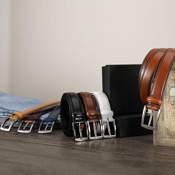 เข็มขัดหนังแท้สำหรับผู้ชาย พร้อมหัวเข็มขัดแบบหมุด