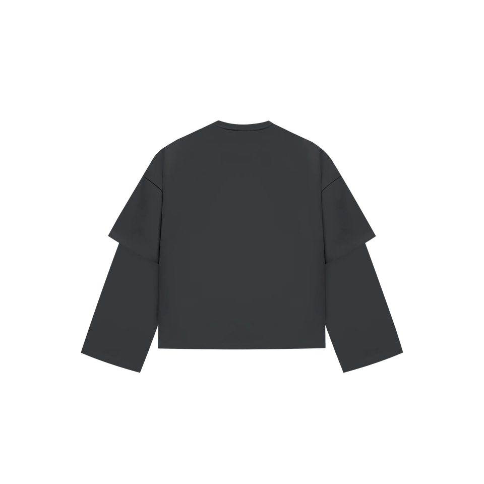 เสื้อยืดสองชั้นมีสไตล์สำหรับผู้ชายเสื้อผ้าแฟชั่นแขนสองโทนใส่สบายตัวเลือกการพิมพ์โลโก้แบบออกแบบได้ตามต้องการ