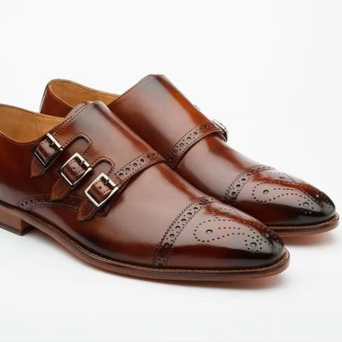 รองเท้าชุดเดรสของผู้ชายมีสไตล์การออกแบบที่หรูหราสะดวกสบายหรูหราหนังพระสายสำหรับใช้ในสำนักงานระบบสายคู่สำหรับฤดูใบไม้ร่วง