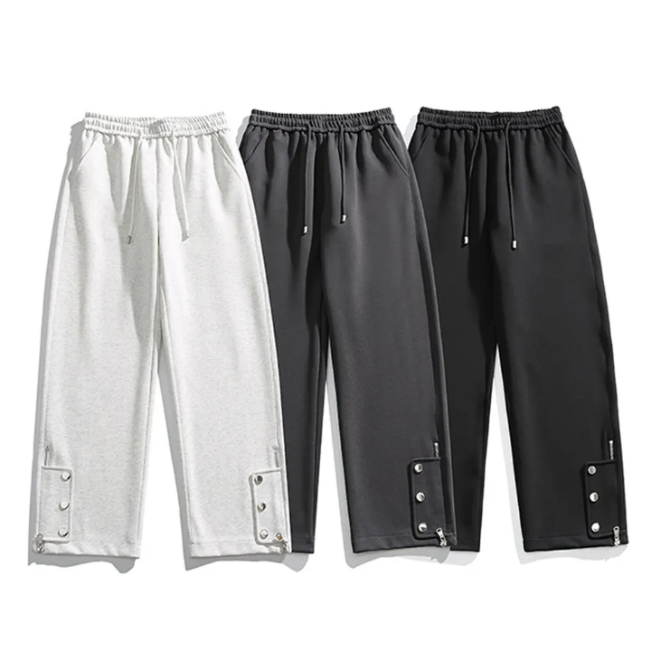 กางเกงสเวตเตอร์มีเชือกรูดสำหรับผู้ชายมีสไตล์กางเกงวอร์มขากว้างสีพื้นกางเกงลำลองสำหรับผู้ชายมาใหม่