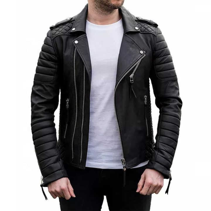 แจ็กเก็ตหนังแท้สำหรับผู้ชายแขนยาวดีไซน์ใหม่ล่าสุด