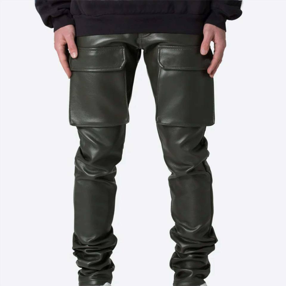 กางเกงคาร์โก้หนังผู้ชายมีสไตล์-คุณภาพสูงนุ่มและเหมาะสำหรับชุดลำลองและการใช้งานที่เป็นประโยชน์
