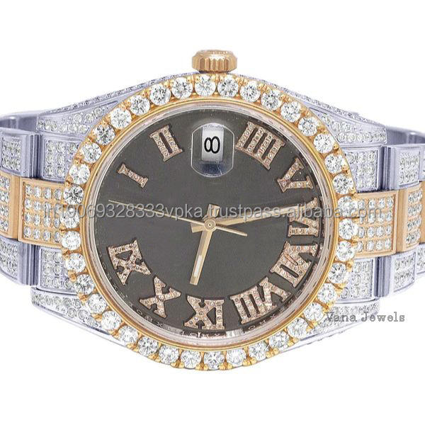 นาฬิกาข้อมือเพชรมอยส์ซาไนต์ของผู้ชายมีสไตล์ทันสมัยสแตนเลสอะนาล็อกคุณภาพสูงสไตล์ฮิปฮอปโบราณขนาด41มม. ให้ความเย็นเต็มที่