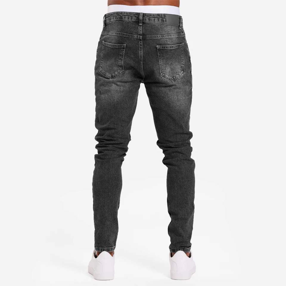 กางเกงยีนส์สลิมฟิตของผู้ชายมีสไตล์ที่มีดีไซน์คลาสสิกและเนื้อผ้าทนทานสำหรับสวมใส่ในชีวิตประจำวัน