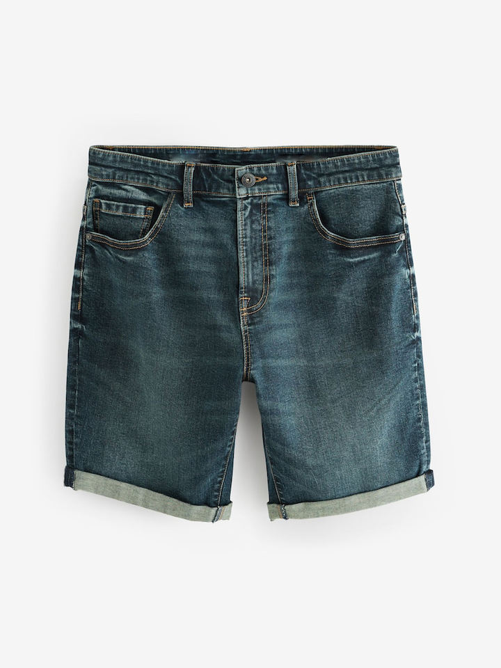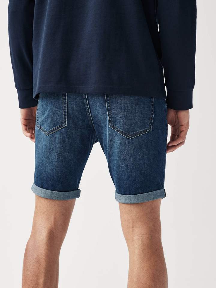 กางเกงยีนส์ขาสั้นผ้าฝ้ายสีฟ้าสำหรับผู้ชายมีสไตล์สำหรับฤดูร้อนเสื้อผ้าแนวสตรีทสวมใส่สบายและทันสมัย