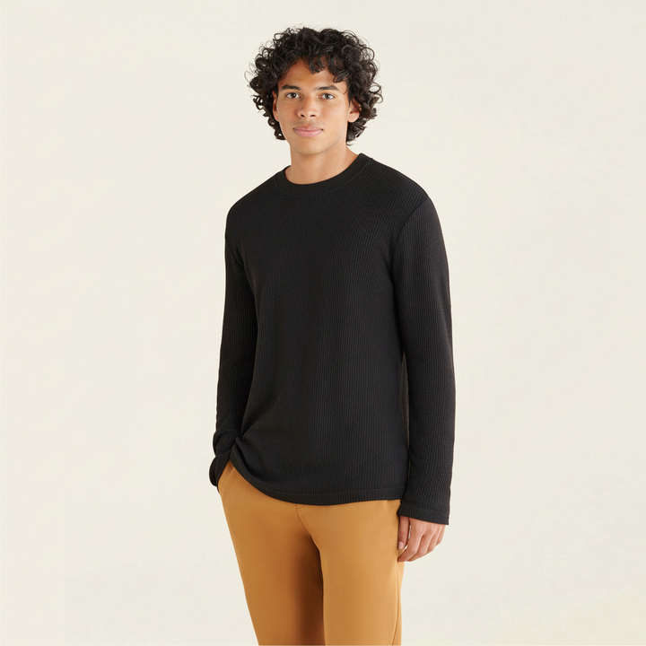 เสื้อยืดแขนยาวถักวาฟเฟิลของผู้ชายมีสไตล์และนุ่มสำหรับวันพักผ่อนหรือชุดลำลองไซส์พิเศษ