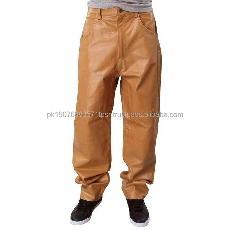 กางเกงหนังทรงไบค์เกอร์สำหรับผู้ชาย ดีไซน์ทันสมัย ทรงตรง เอวกลาง กันลม เป็นมิตรต่อสิ่งแวดล้อม เหมาะสำหรับแฟชั่นสตรีทแวร์หลากหลายสไตล์