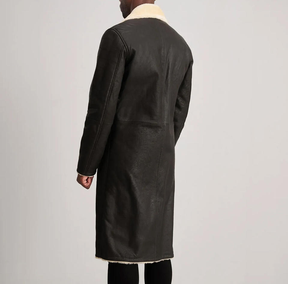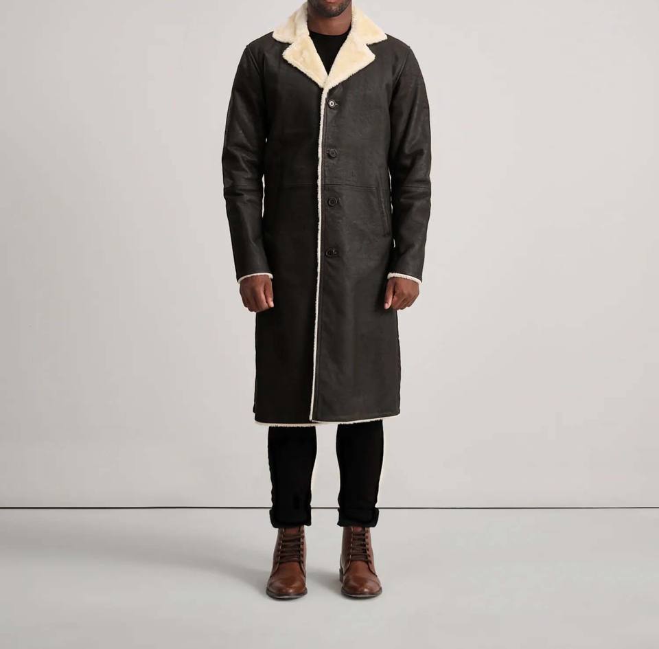 เสื้อโค้ทหนังผู้ชายแฟชั่นสำหรับฤดูหนาว ทรงยาว คอตั้ง คุณภาพสูง ผ้าสองด้าน ทนทาน กันน้ำ ระบายอากาศ บริการ OEM