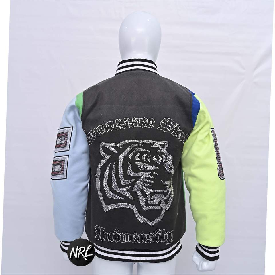 Stylish Men's Winter Varsity Letterman Style Hooded Bomber Jacket Genuine Waterproof Embroidered Chenille Patches Sheep Knitted
