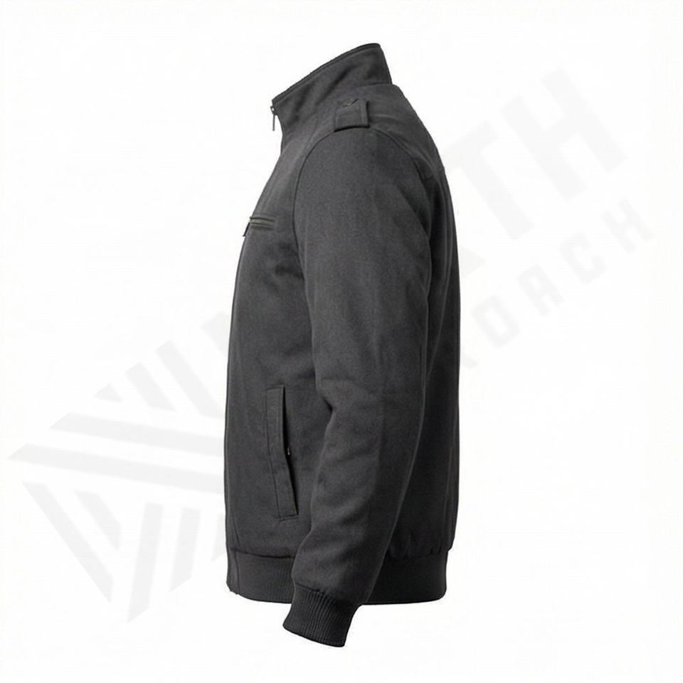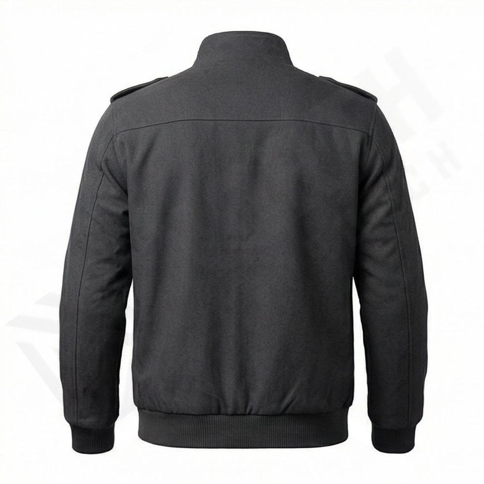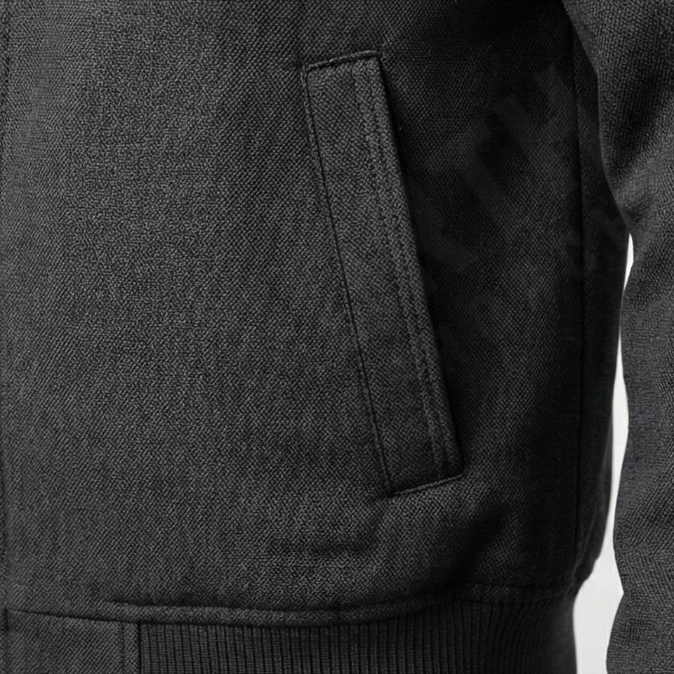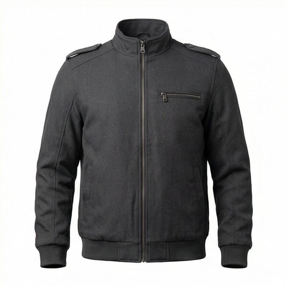 แจ็คเก็ตหนังบอมเบอร์ผู้ชายสีเทาสุดเท่ห์ ทำจากหนังแกะแท้ 100% พร้อมปลายแขนเสื้อถักแบบควิลท์โพลีเอสเตอร์ ดีไซน์หรูหรา