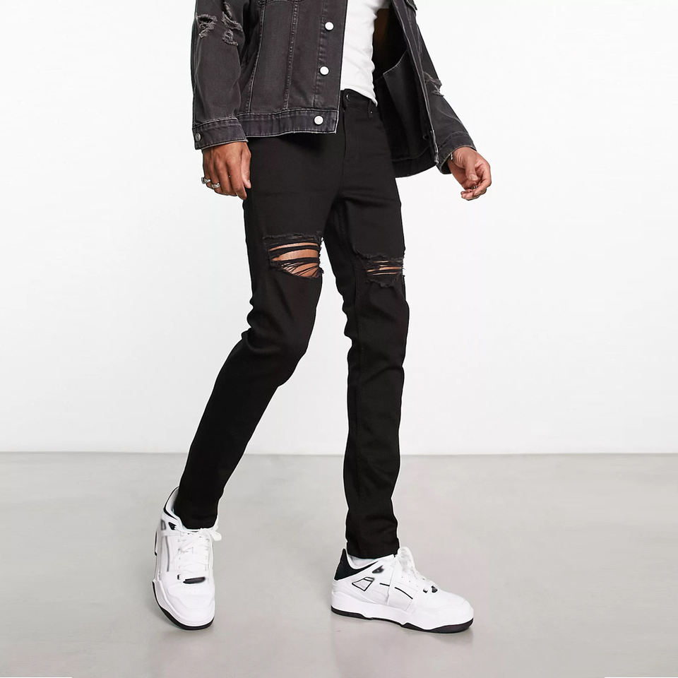 กางเกงยีนส์ซักขาตรงของผู้ชายมีสไตล์สวมใส่สบายและผ่อนคลายด้วยรูปลักษณ์ที่ไร้กาลเวลาเหมาะสำหรับชุดลำลองและสไตล์สตรีท