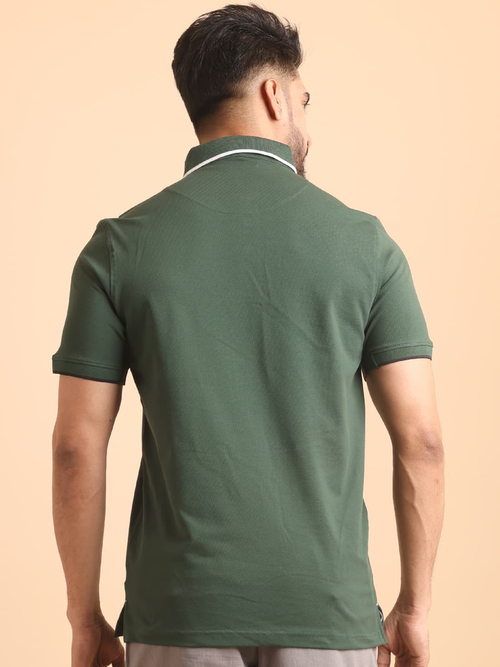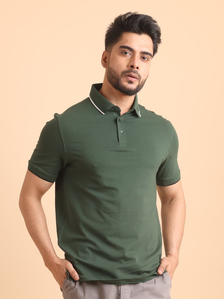 เก๋อย่างมีสไตล์สำหรับเสื้อโปโลคอโปโลแบบครึ่งแขนใส่สบายลายทึบผ้าฝ้าย100% มะกอกผ้าถักสำหรับทุกประเภท