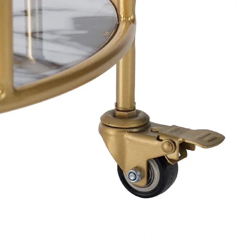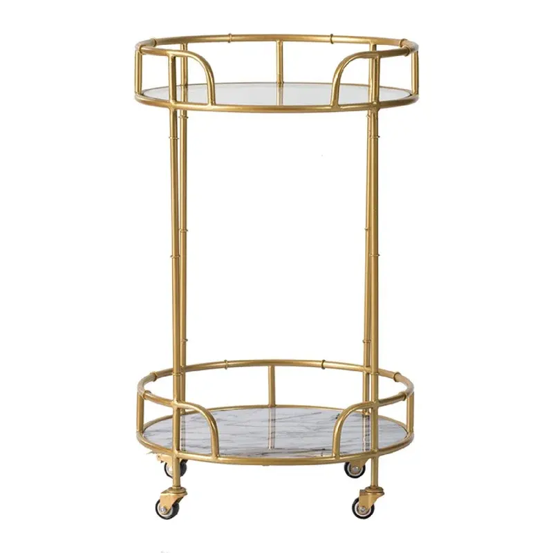 รถเข็นเสิร์ฟโลหะและกระจกดีไซน์หรูหรา พร้อมชั้นวางของ รถเข็นบาร์โลหะดีไซน์เนอร์พร้อมที่จับเคลือบอย่างปลอดภัย
