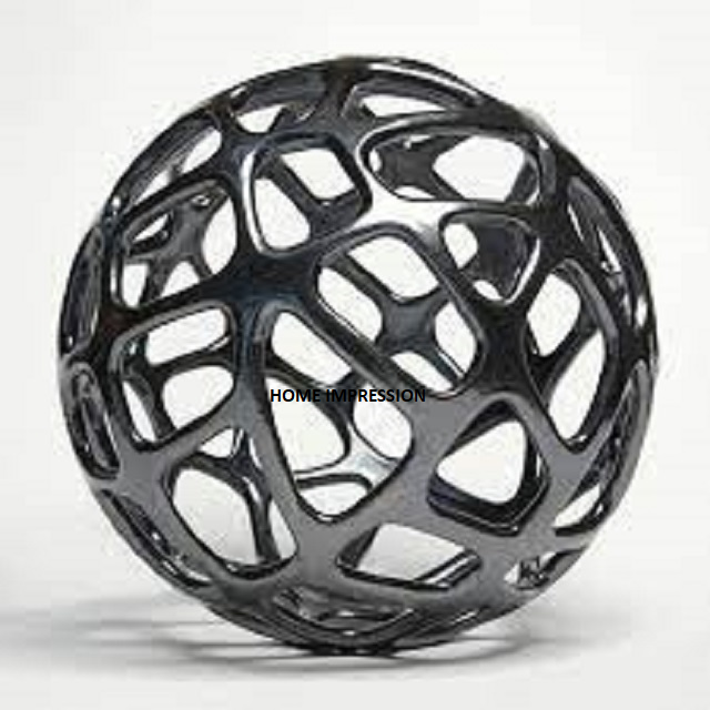 รูปปั้นโลหะทรงกลมสีทองแบบมีสไตล์ออกแบบให้มีความหรูหราวางกลางโต๊ะทำจากโลหะ