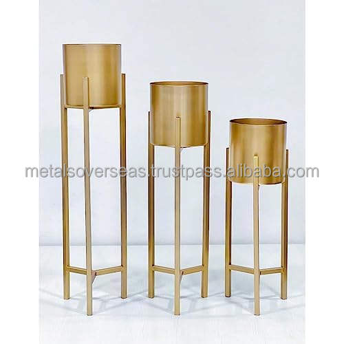 ที่วางต้นไม้โลหะสไตล์คลาสสิกพร้อมกระถางต้นไม้สำหรับตกแต่งสวนในบ้านและระเบียง-ชุด3ชิ้น