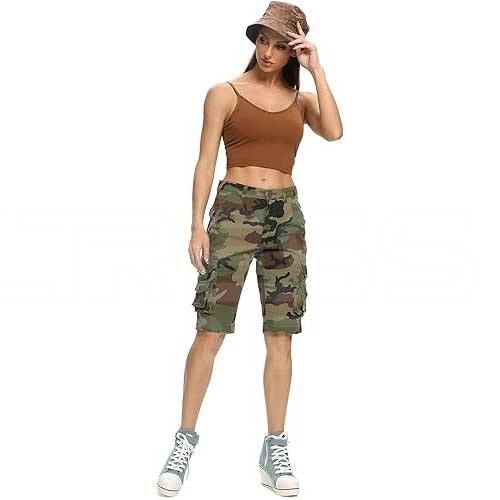 กางเกงลำลองเอวกลางมีสไตล์สำหรับผู้หญิงกางเกงคาร์โก้กางเกงขาสั้นสไตล์สตรีทแวร์ระบายอากาศได้ดีออกแบบได้ตามต้องการ
