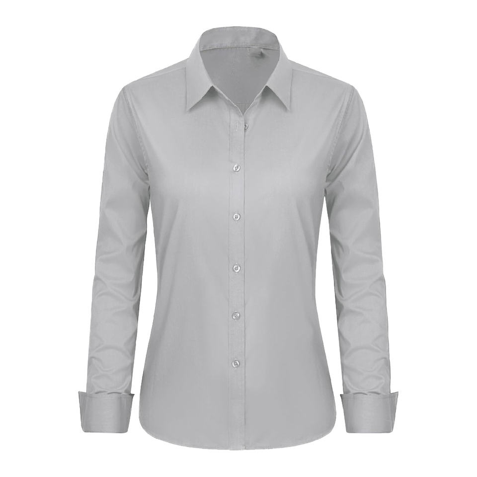 เสื้อเชิ้ตแขนยาวของผู้หญิงแบบเรียบง่ายมีกระดุมด้านหน้า100% ด้วยผ้าฝ้ายแขนแร็กแลนทรงพอดีตัวปกติดูทันสมัย