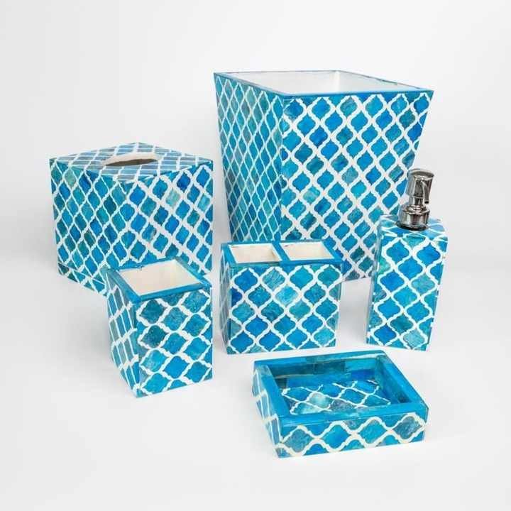ชุดห้องน้ำดีไซน์ทันสมัยทันสมัยมีสไตล์ Artisan Bone Inlay ขวดล้างมือ & อุปกรณ์เสริมทั้งหมดสำหรับโรงแรมและห้องน้ำ