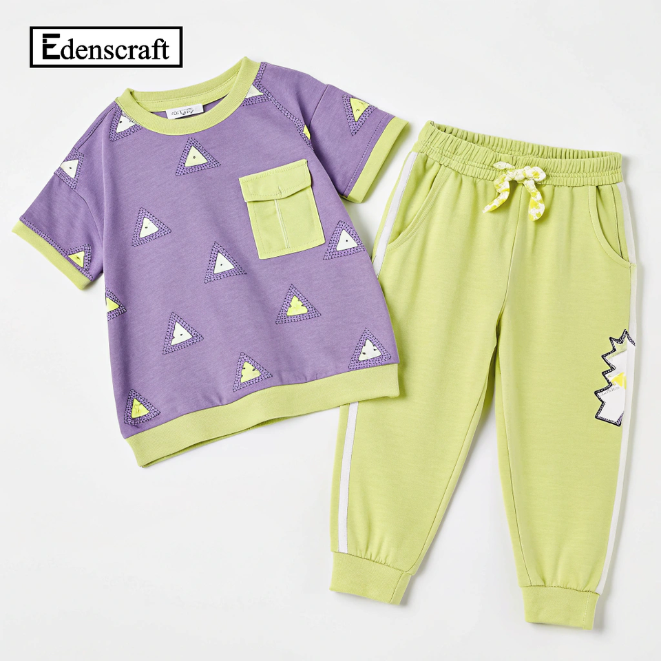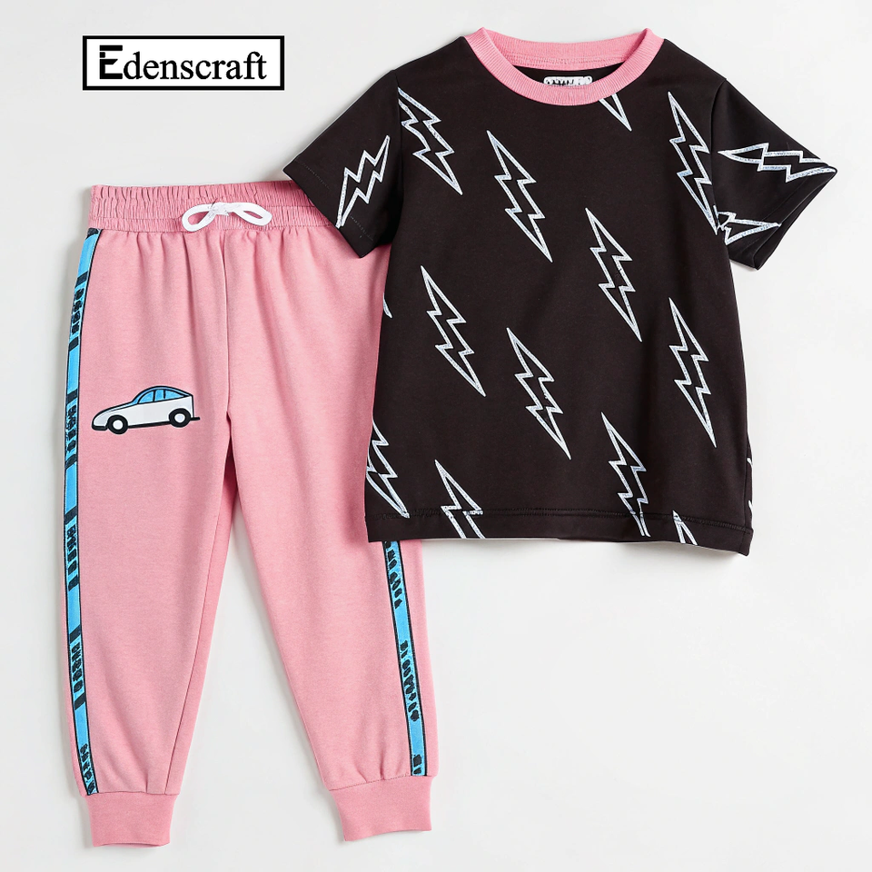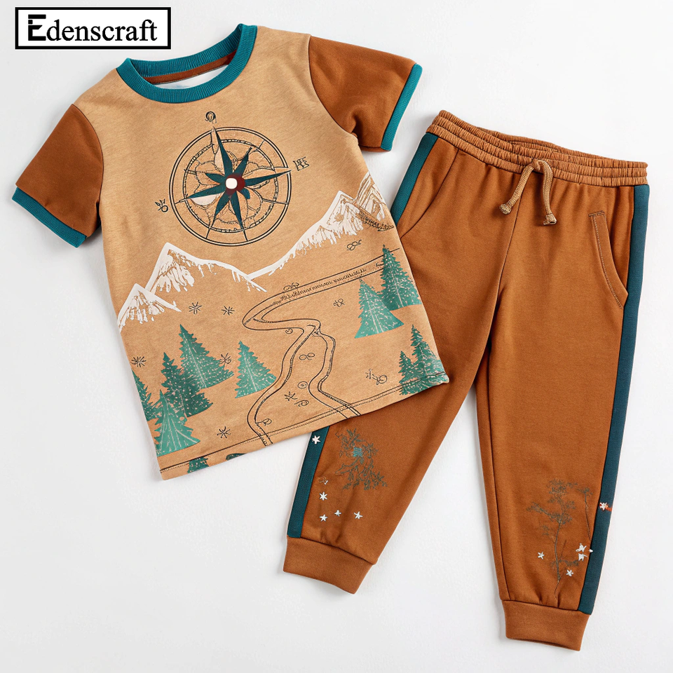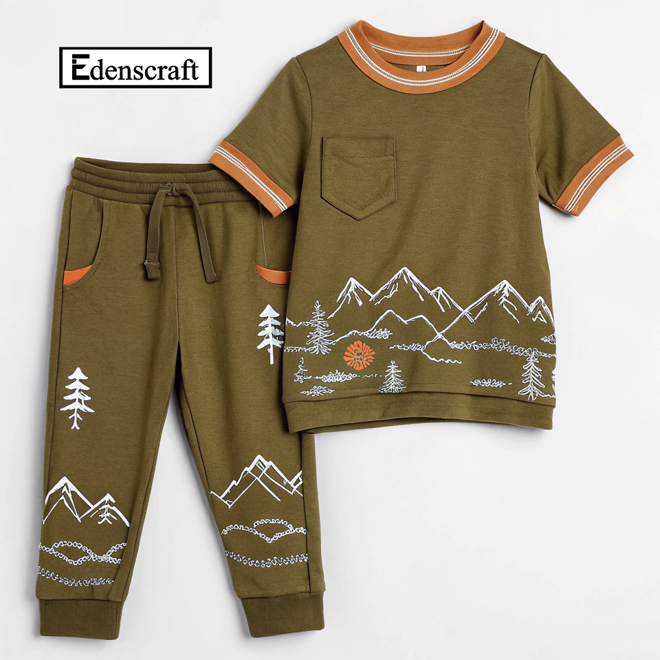 ชุดเสื้อผ้าเด็กผู้ชายสุดเท่ห์ทันสมัย พิมพ์ลายคุณภาพสูง ผลิตจากผ้าสแปนเด็กซ์/โพลีเอสเตอร์ คอลเลคชั่นฤดูร้อนปี 2025 ชุดลำลองสุดฮิต พร้อมเสื้อยืดและกางเกงจ็อกเกอร์