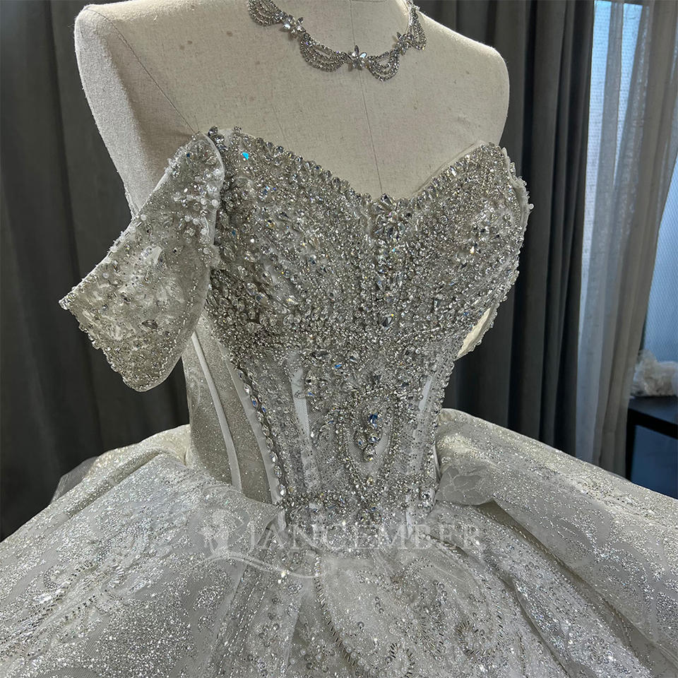 ชุดแต่งงานทรงบอลกาวน์ทันสมัยมีสไตล์ พิมพ์ลายดอกไม้ตามสั่ง คอรูปหัวใจ ชายกระโปรงยาวลากพื้น ประดับเลื่อมและลูกปัด