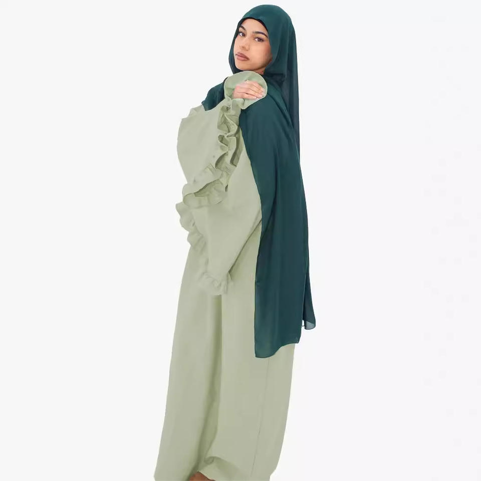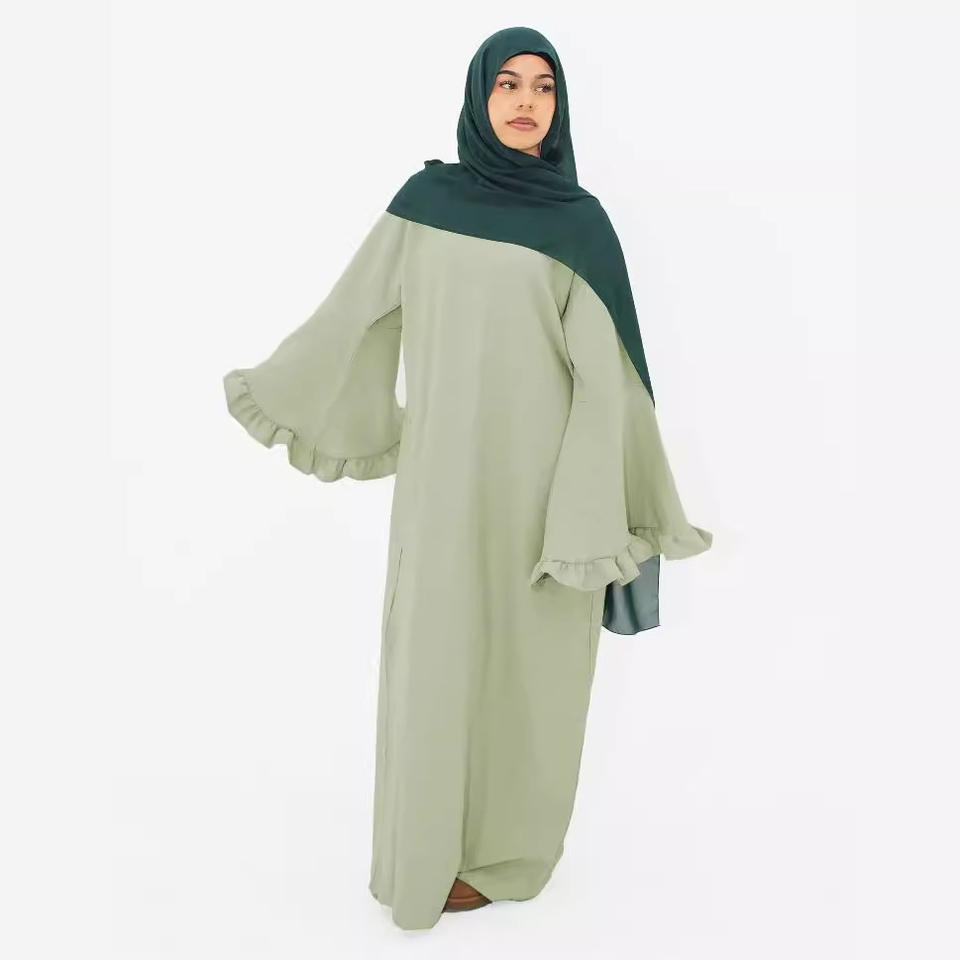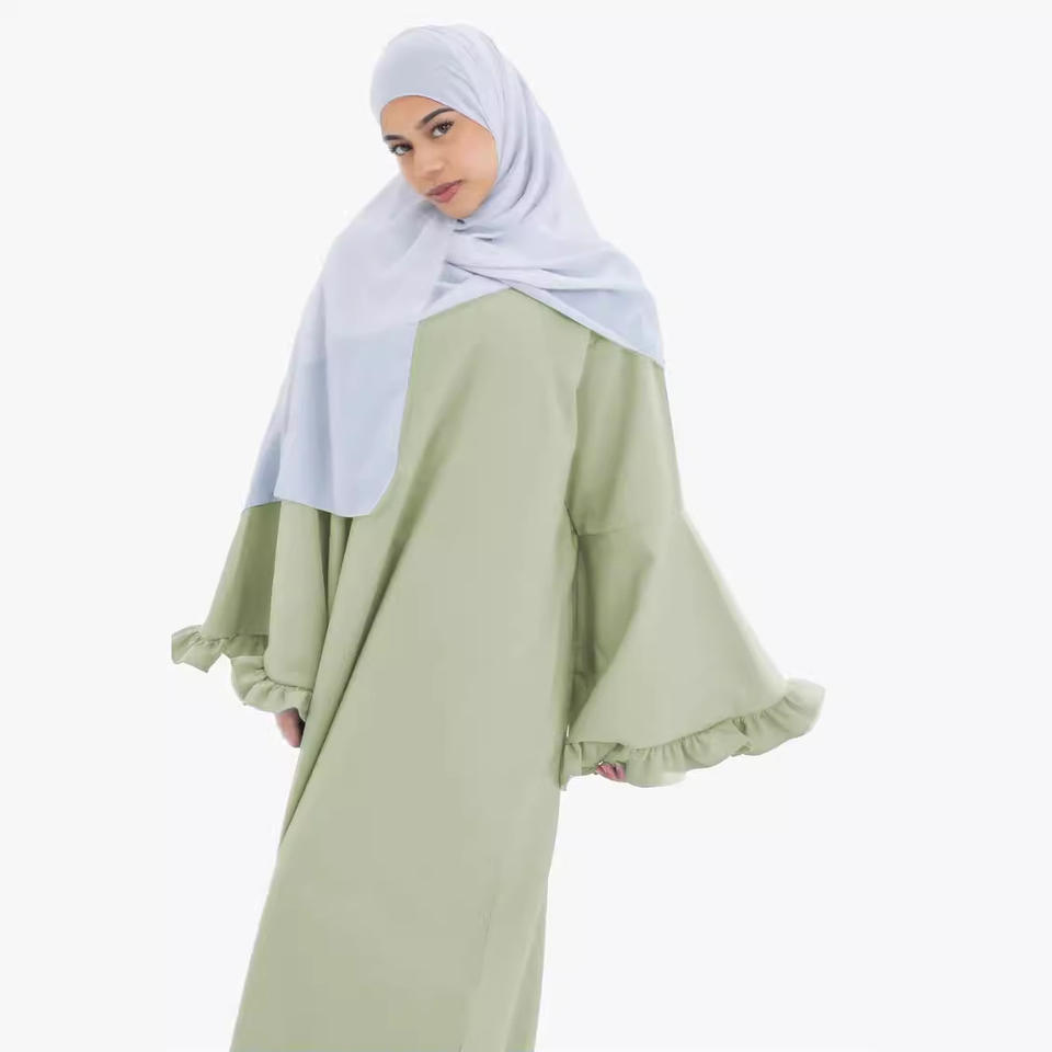 ชุดอาบายะห์ผ้าชีฟองสีพื้นเรียบหรู ยาวคลุมเท้า ซักได้ เหมาะสำหรับสตรีชาวมุสลิม ใส่ไปงานประชุม งานเลี้ยงน้ำชา