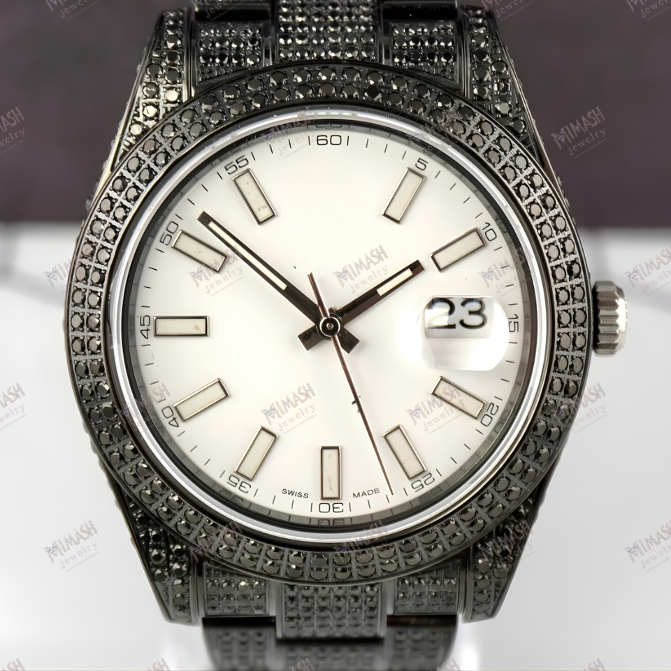 นาฬิกาเพชรโมอิสซาไนต์สุดเท่สำหรับผู้ชาย ประดับเพชรระยิบระยับระดับพรีเมียม ดีไซน์หรูหรา เหมาะสำหรับชุดทันสมัย