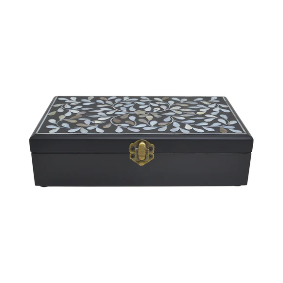 กล่องใส่เครื่องประดับมุกเปลือกหอย ดีไซน์ใบไม้ดอกไม้ ตกแต่งสวยงาม ทันสมัย