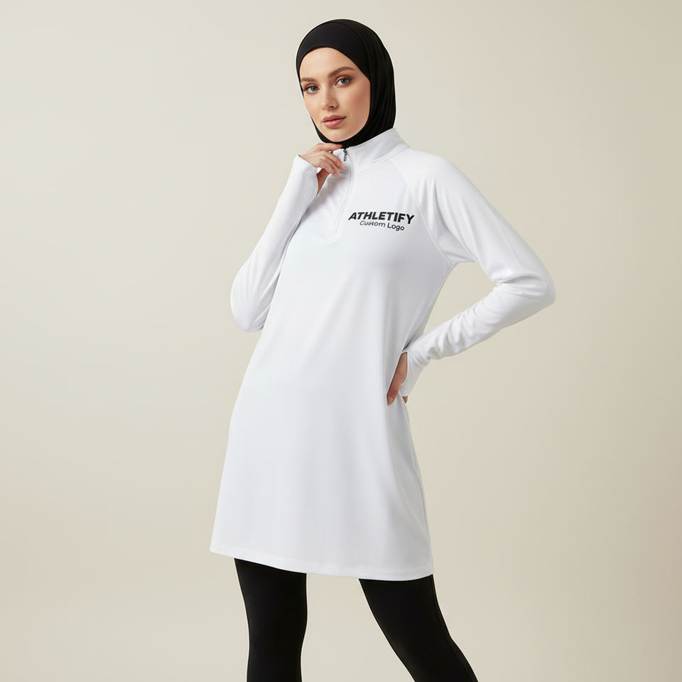 เสื้อเชิ้ตยาวผู้หญิงมุสลิม มีซิปครึ่งตัว