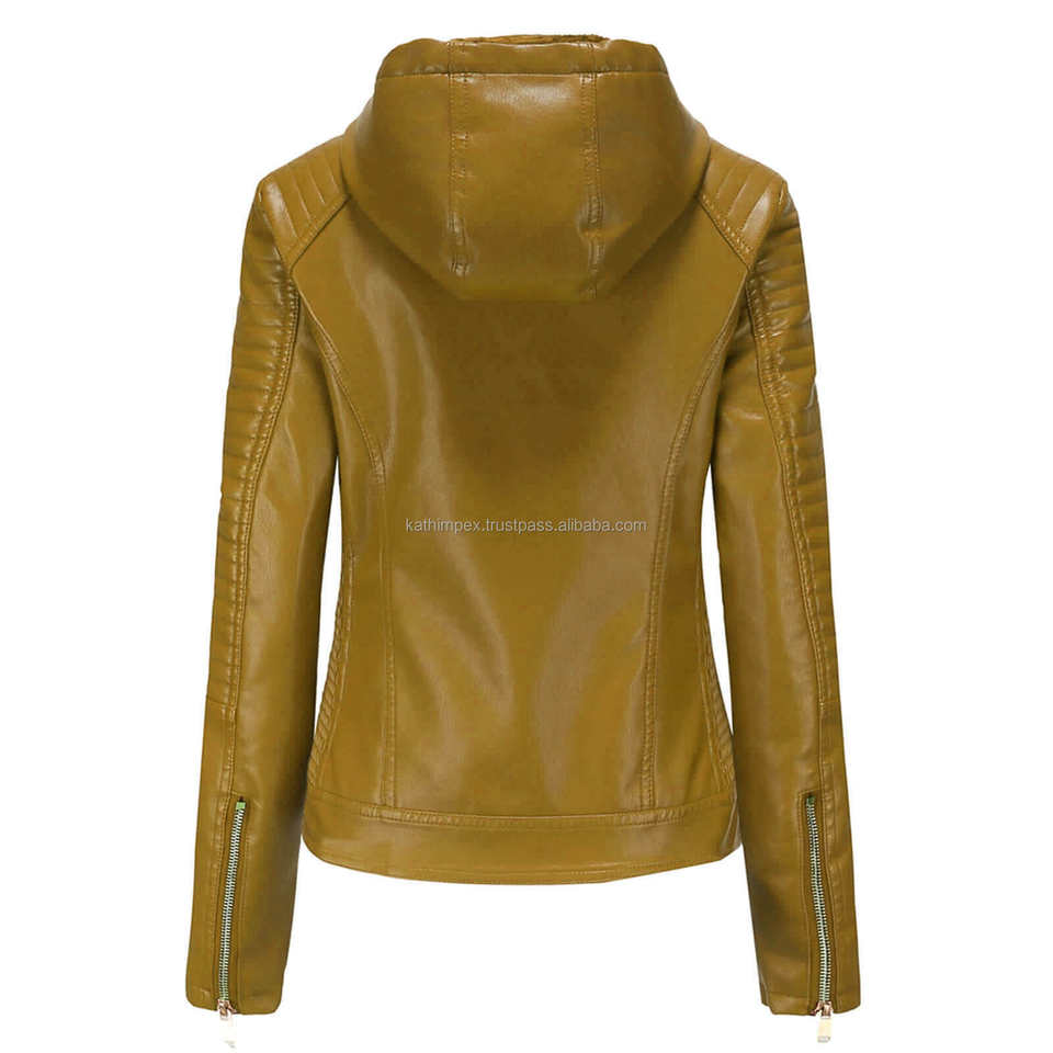 แจ็กเก็ตหนังโมโตแบบมีฮู้ดสีเหลืองทันสมัยสำหรับผู้หญิงแจ็กเก็ตมีประโยชน์หลากหลายพร้อมตัวปิดซิปซับในเชอร์ปาสวมใส่สบายทนทาน