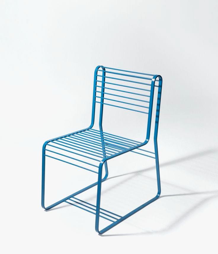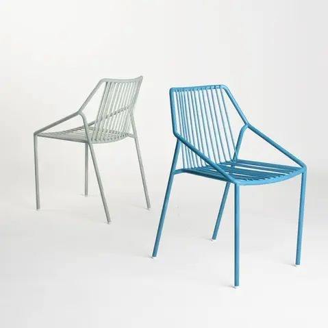เก้าอี้เคลือบผงสีฟ้าทันสมัยไม่มีสนิมสำหรับใช้ในร่มและกลางแจ้งที่นั่งอเนกประสงค์น้ำหนักเบาทนทานใหม่มีสไตล์