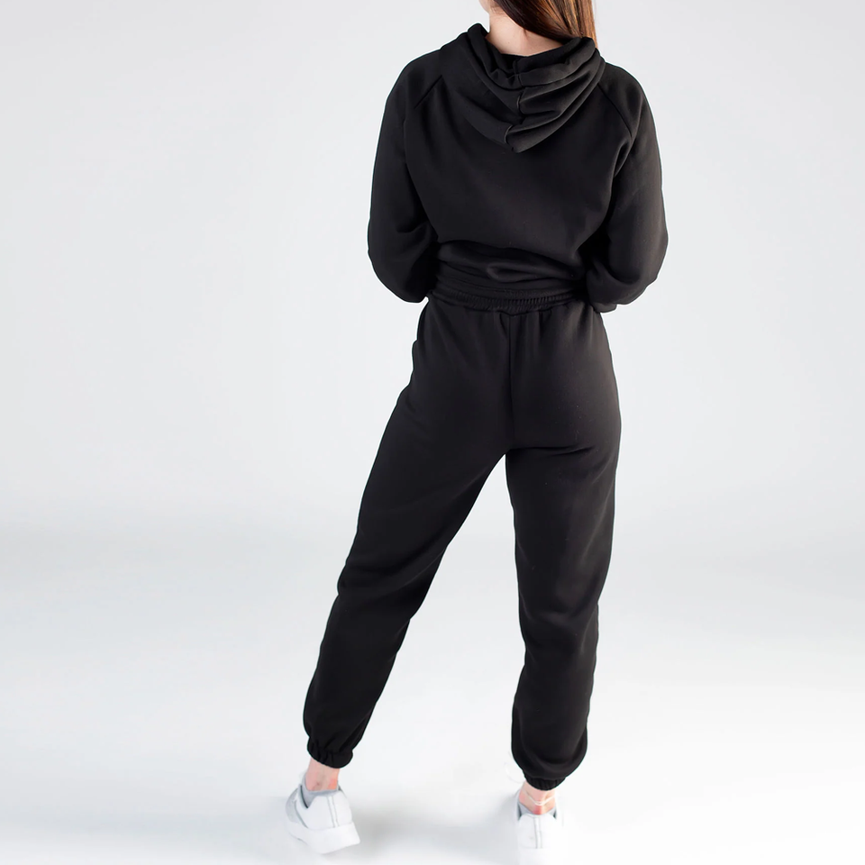ชุดเสื้อผ้า100% 2ชิ้นสไตล์สตรีทสำหรับผู้หญิงผ้าคอตตอนมีฮู้ดและกระดุมติดโลโก้แบบใหม่ฤดูหนาว