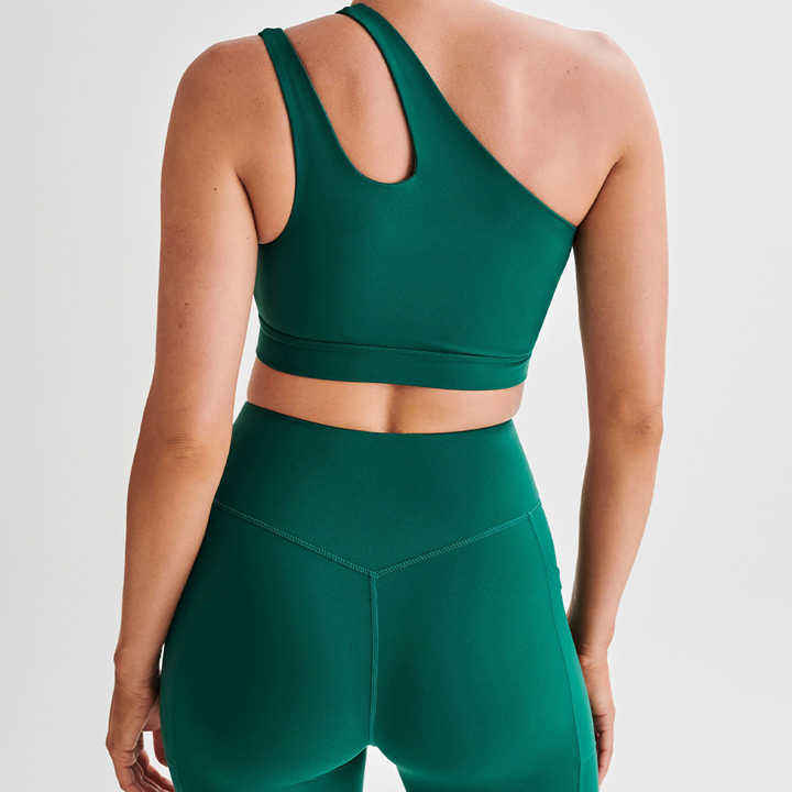 บราเล่นกีฬาครอปไหล่ข้างเดียวระบายอากาศน้ำหนักเบามีสไตล์ดีไซน์เรียบง่ายสำหรับเล่นโยคะออกกำลังกายในชีวิตประจำวันมีไซส์พิเศษให้เลือก