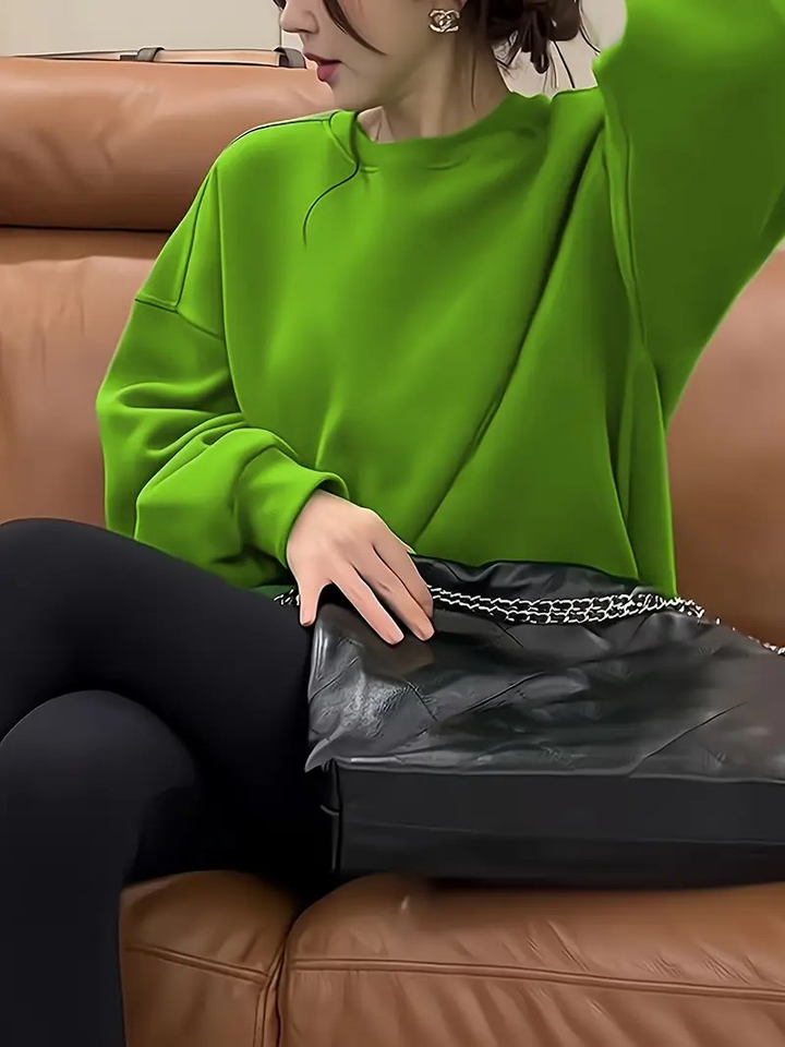 เสื้อสเวตเตอร์ผู้หญิงขนาดใหญ่มีสไตล์สีเขียวสดใส-นุ่มสบายและอเนกประสงค์สำหรับสวมใส่ในชีวิตประจำวัน