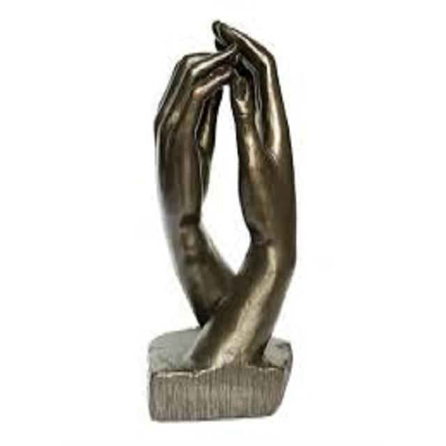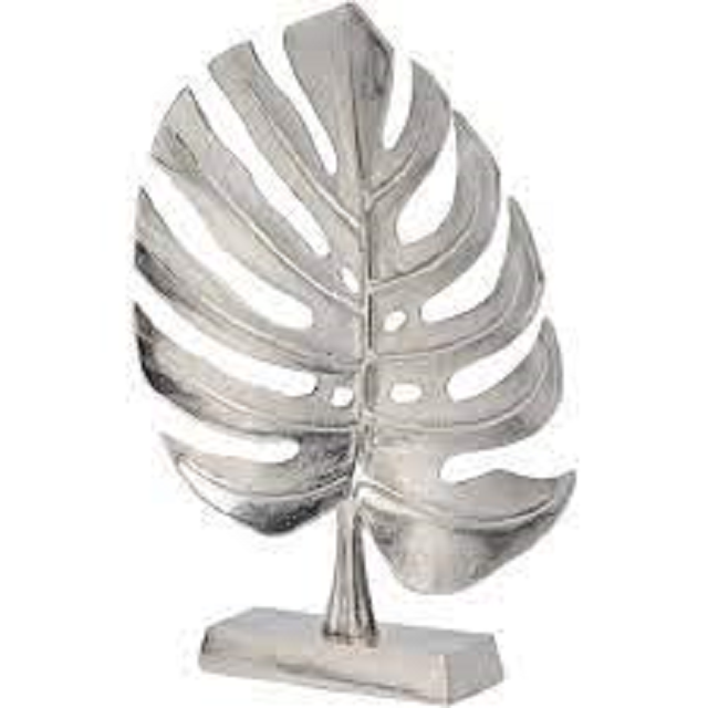 Stylish Palm Leaf Designer Antique Sculpture Marble Base Standing Metal Tabletop Office Display Sculpture Decoration for Home