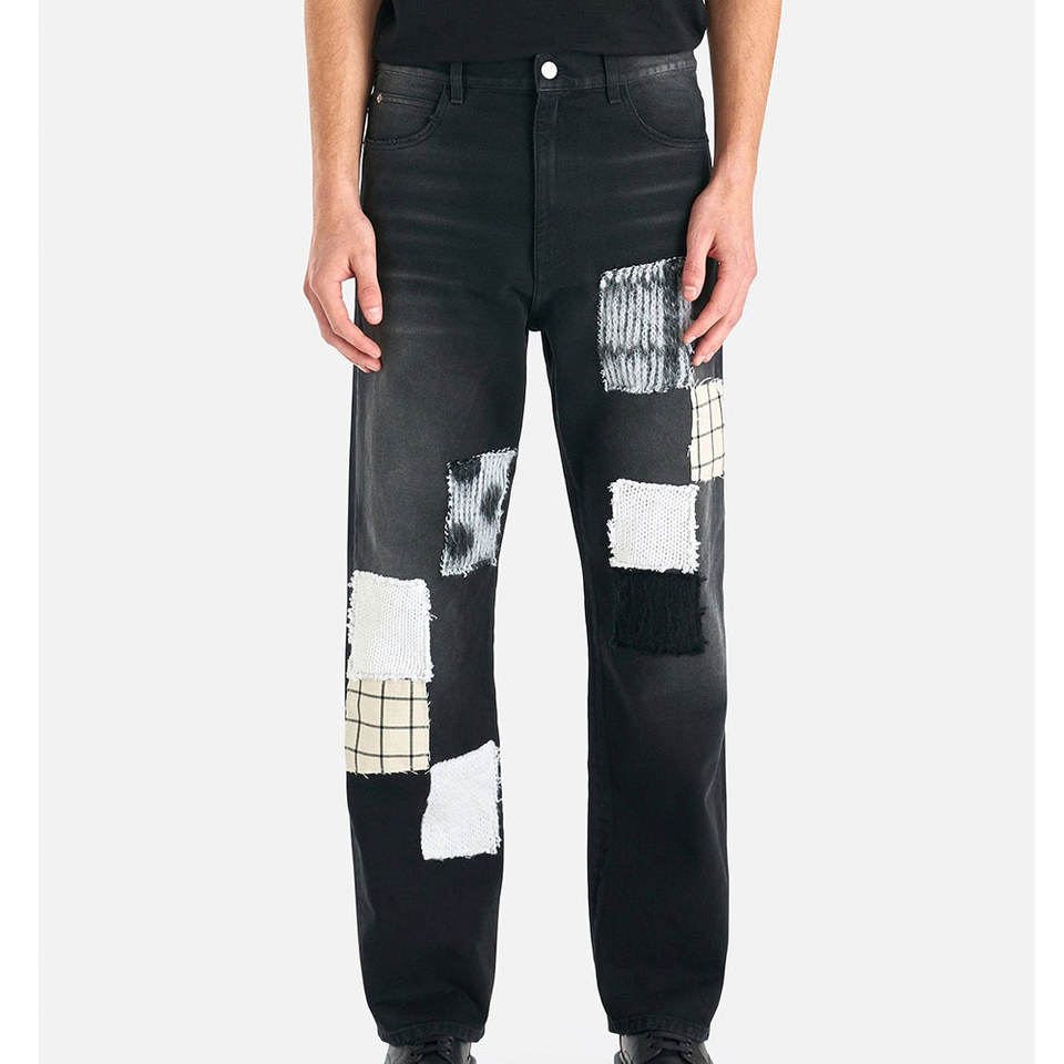 กางเกงยีนส์เย็บปะติดมีสไตล์ที่ดูเครียดและใส่สบาย
