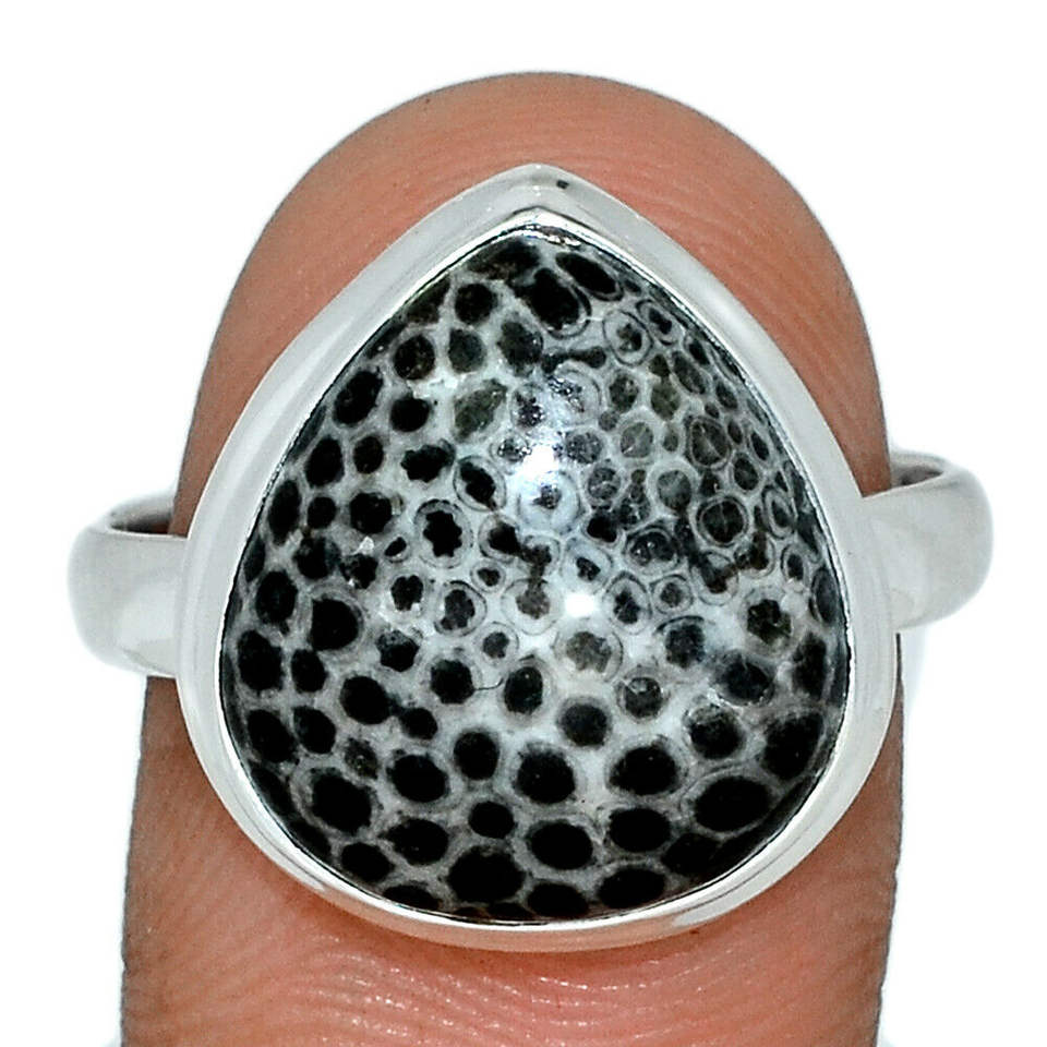 Stylish Pear Shape Black Coral Gemstone 925 Solid Sterling Silver Ring Black Gemstone Semiprecioua Fine Jewellery Silver Ring