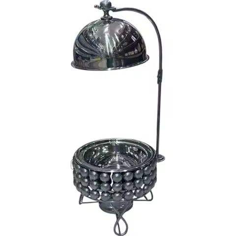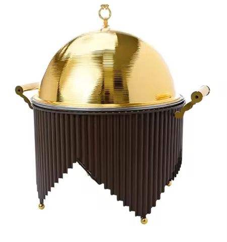 Stylish Pink Metallic Food Warmer Container with Hinged Dome Lid Decorative Spheres Modern Casserole Kitchenware Home Decor