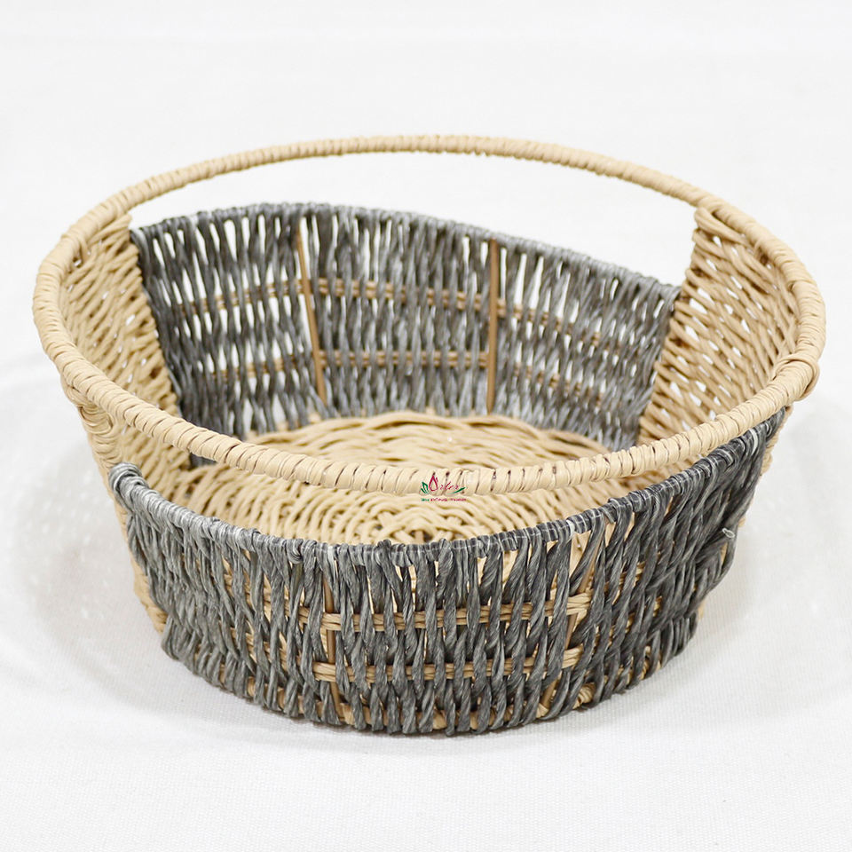 ชามหวายตกแต่งพลาสติกที่มีสไตล์สีเทาและสีเบจทำด้วยมือสำหรับตกแต่งบ้านห้องนั่งเล่น