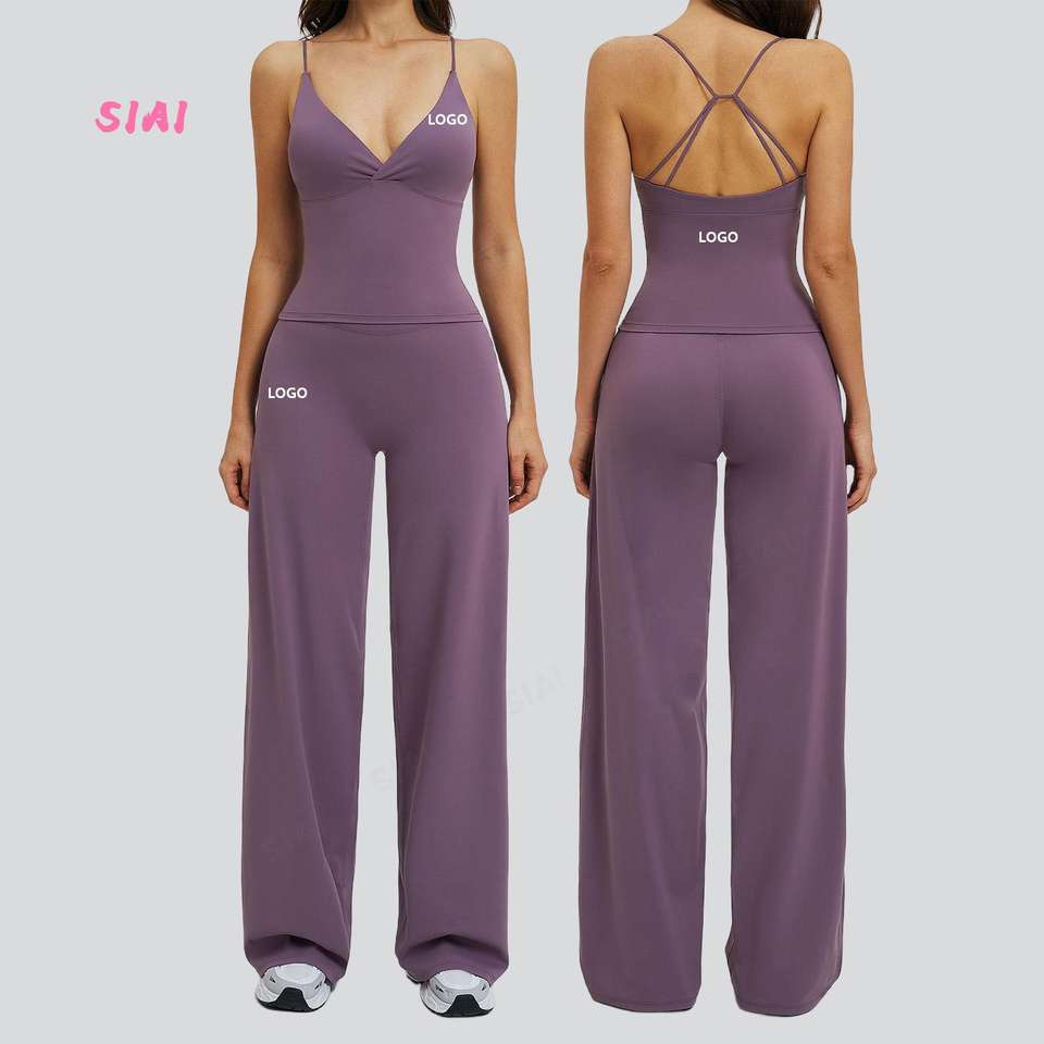 ชุดโยคะพลัสไซส์สุดเก๋ แบบกลับด้านได้ ผ้าสี่ทิศทางยืดหยุ่น ระบายอากาศดี เสื้อคอวี กางเกงขายาวเอวไขว้