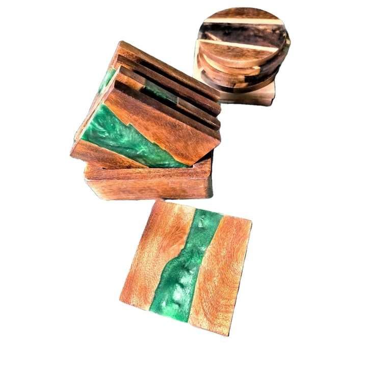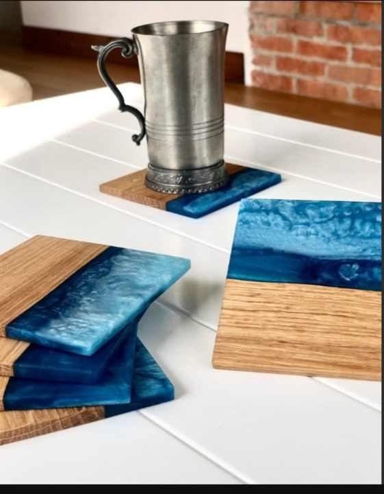ที่รองแก้วไม้ธรรมชาติพร้อมแผ่นรองเครื่องดื่มดีไซน์ดอกไม้อีพอกซีเรซิน