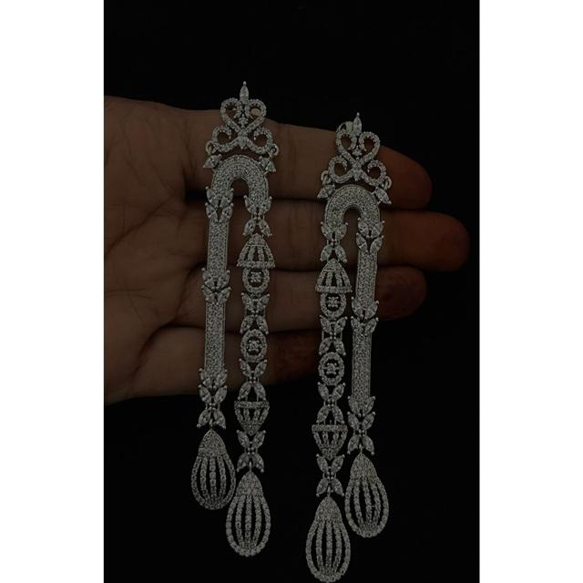 ต่างหูระย้าทรงยาวประดับเพชร CZ ชุบเงินคุณภาพพรีเมียม ดีไซน์ทันสมัยสำหรับผู้หญิงและเด็กผู้หญิง เหมาะสำหรับงานเลี้ยงตอนเย็น