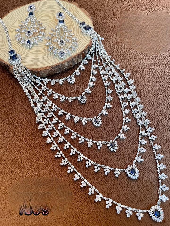 ชุดสร้อยคอยาวประดับเพชรซีกอนเคลือบเงินคุณภาพพรีเมียม ดีไซน์ทันสมัย พร้อมต่างหู สำหรับงานแต่งงาน