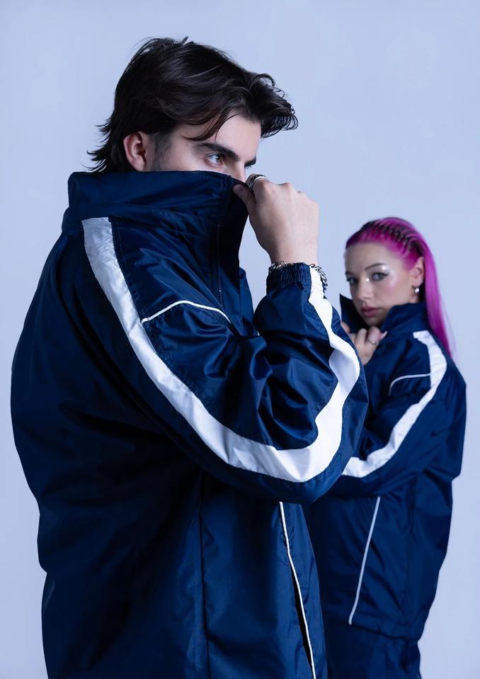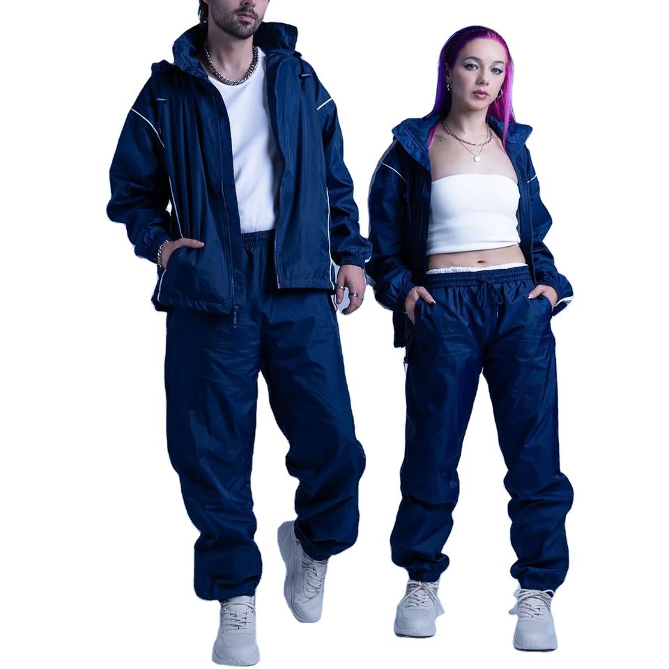 ชุดวอร์มผ้าไนลอนเนื้อแข็งลำลองมีฮู้ดสำหรับทุกเพศชุดฝึกเป็นมิตรต่อสิ่งแวดล้อมกันลมพิมพ์ลายมีสไตล์สำหรับฤดูหนาว