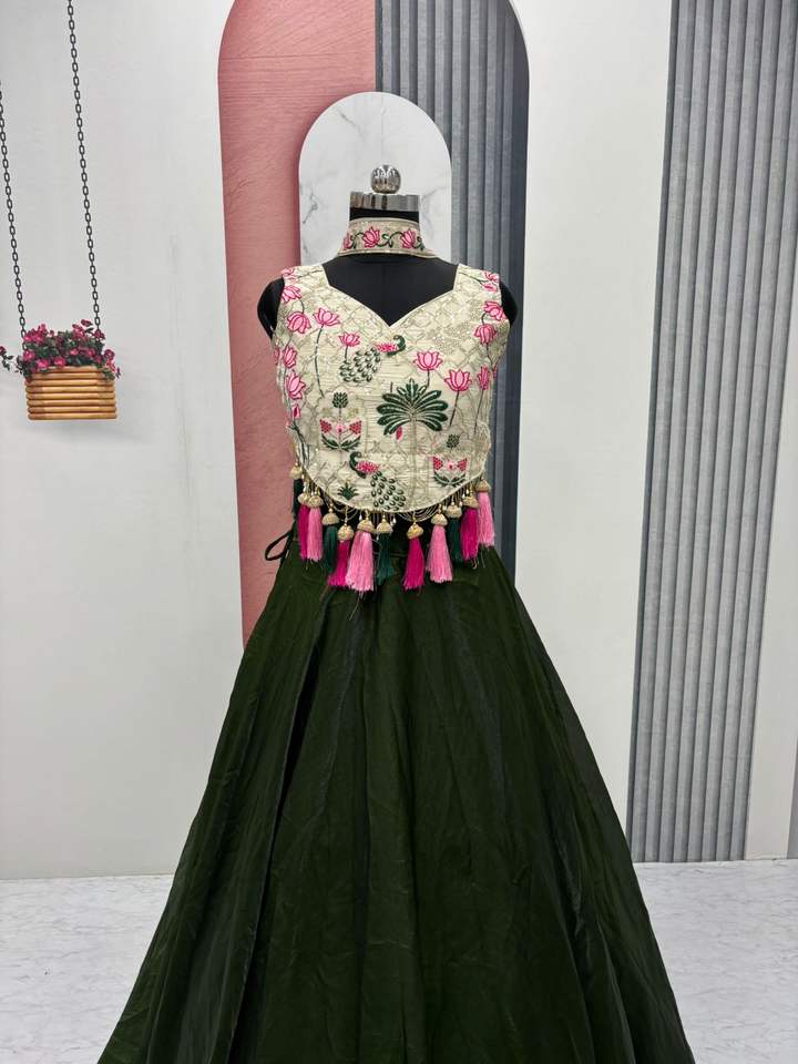 Stylish Pure Simar Tissue Silk Lehenga Choli with Full Embroidery Sequin Thread Work for Reception Engagement & Festival Events