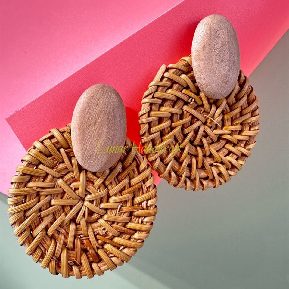 ต่างหูรูปต้นปาล์มมีสไตล์เครื่องประดับแฟชั่นทำด้วยมือวัสดุหวายของขวัญที่สมบูรณ์แบบสำหรับงานแต่งงานของผู้หญิงสไตล์เวียดนาม